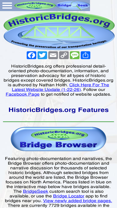 historic bridges resource with photographs and information for bridges in north america. includes in-depth articles about types in general.
