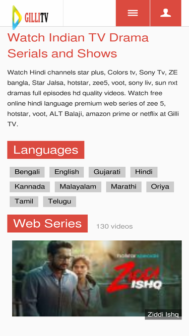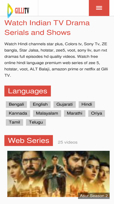 92%Watch Hindi channels star plus, Colors tv, Sony Tv, ZE bangla, Star Jalsa, hotstar, zee5, voot, sony liv, sun nxt dramas full episodes hd quality videos. Watch free online hindi language premium web series of zee 5, hotstar, voot, ALT Balaji, amazon prime or netflix at Gilli TV.