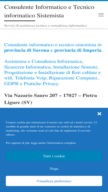 Consulente Informatico e tecnico sistemista, privacy e gdpr, networking e sicurezza informatica, assistenza tecnica , Centralini VOIP, reti cablate e wifi