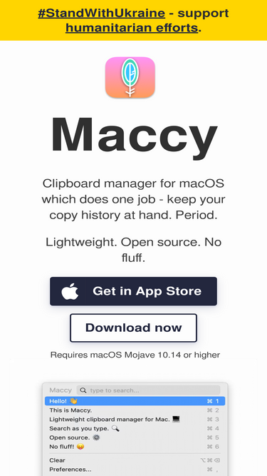 clipboard manager for macos which does one job - keep your copy history at hand. lightweight. open source. no fluff.
