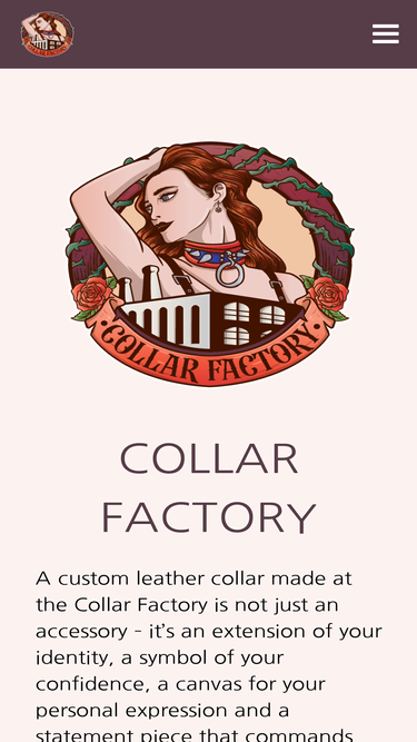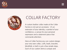 COLLAR FACTORY A custom leather collar made at the Collar Factory is not just an accessory - it's an extension of your identity, a symbol of your confidence, a canvas for your personal expression and a statement piece that commands attention. Here at Collar Factory you can custom-design your very own collar, cuffs, leash, bracelet,