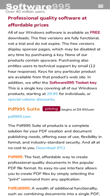 pdf995.com在 一月 2026 的前五名竞争对手是:primopdf.com、cutepdf.com、nchsoftware.com、investintech.com等。