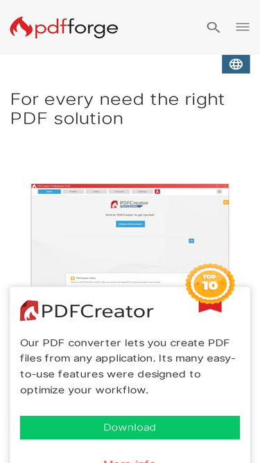 PDFCreator is our free PDF converter that lets you convert files to PDF, merge PDF files, rearrange PDFs, and more. Download PDFCreator here.