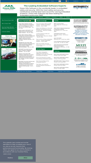 85%green hills software is the largest independent embedded software provider. with the most safety and security certifications and the best track record for solving embedded problems, green hills software has been leading the embedded world since 1982.