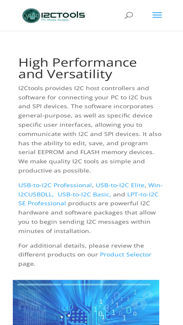 100%I2C Tools provides I2C host controllers and software for connecting your PC to I2C bus and SPI devices. I2C Interface products.