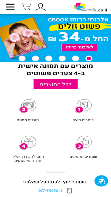 באתר cbook תוכלו לעצב ולהדפיס אלבומים דיגיטליים, תמונות לקיר, פיתוח תמונות על נייר קודאק, מחברות, ספלים ושלל מתנות אישיות. כל זאת בתוכנת עריכה אונליין, קלה לשימוש עם מגוון עיצובים חדשים