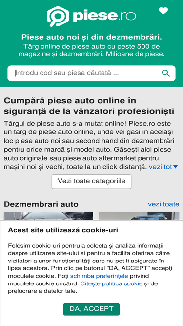 cumpăra piese auto din dezmembrări, ai libertatea să plătești în rate, beneficiezi de reducerile zilei +400.000 piese in stoc, livrare rapida, garanție.