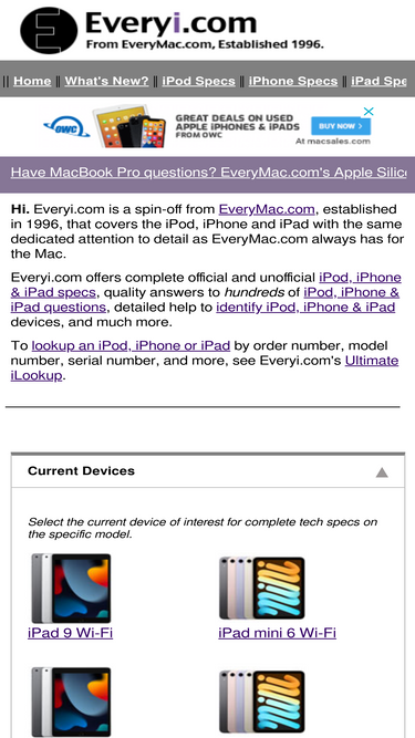 a complete guide of every ipod, iphone and ipad with specs, configuration info and prices, detailed answers to ipod, iphone and ipad questions, and more.