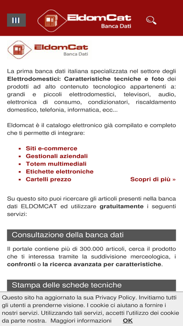 Banca dati caratteristiche tecniche e foto: Elettrodomestici - Tv- Tv lcd - Audio - Informatica - Telefoni - Lavatrici - Asciugatrici - Accessori - Cura della persona - Aspirapolvere - Robot da cucina - Robot aspirapolvere - Condizionatori.