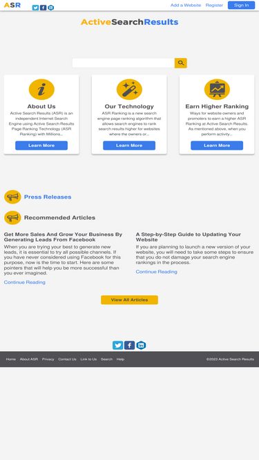 active search results (asr) is an independent internet search engine using a proprietary search engine ranking technology. all search results are provided by asr's internal indexes and databases without relying on outside resources or third party search engines. asr maintains its own spiders visiting web sites daily that are submitted to asr and crawlers that index other popular web sites on the internet.
