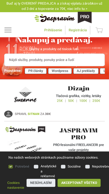 Jaspravim ponúka tisíce služieb a hand made produktov cez internet. Nakúpte kvalitnú grafiku, preklady, články, náušnice. Zarobte si cez internet a predávajte služby a hand made produkty na Jaspravím.