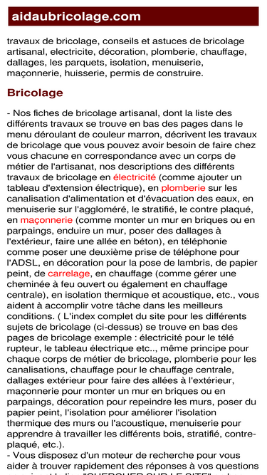 aidaubricolage.com vous aide à faire vos travaux de bricolage dans l'habitat. de nombreuses fiches décrivent les différents travaux. bricolage.