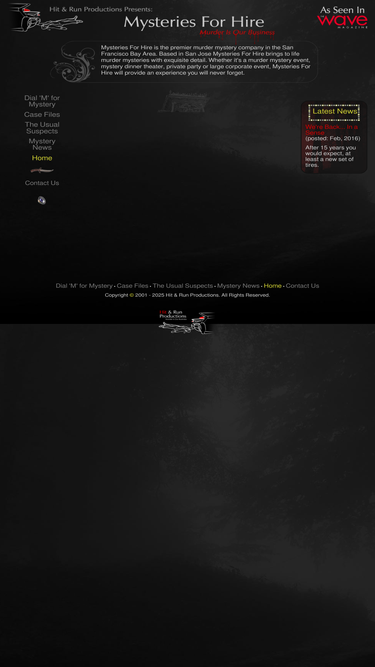 hit & run productions presents mysteries for hire, the premiere murder mystery dinner theater in the san francisco bay area, penninsula and south bay.