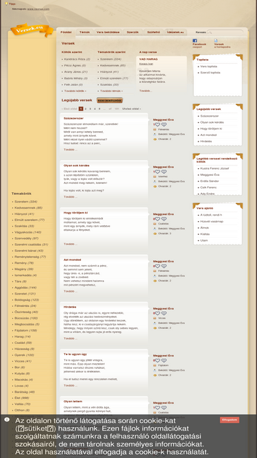 58%a legszebb versek folyamatosan bővülő gyűjteménye. küldd be te is saját költeményed!