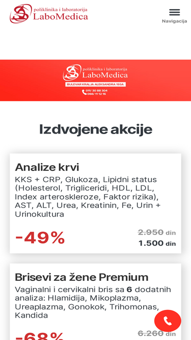 76%Kod nas možete po vrlo povoljnoj ceni da uradite sve vrste laboratorijskih nalaza i specijalističkih pregleda. Cenovnik