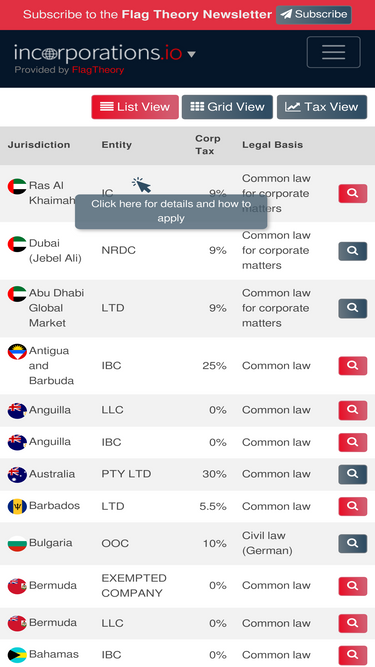 90%incorporations.io allows you to compare and explore legal requirements and taxes to find the best country to incorporate a company and carry out international business.