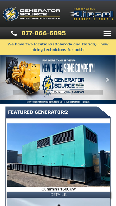 Find new and used diesel generators at Generator Source. We offer all fuel types and all major brands available now for immediate delivery.