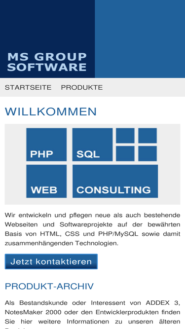 100%willkommen! wir entwickeln und pflegen neue als auch bestehende webseiten und softwareprojekte auf der bewährten basis von html, css und php/mysql sowie damit zusammenhängenden technologien. weiterhin finden sie unser produktarchiv, u.a. mit addex 3, notesmaker 2000, acrix sowie den entwicklertools für rgh-profan² bzw. xprofan.