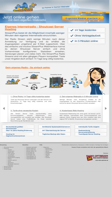 14 tage kostenlos eigenes webradio testen. gratis internetradio webseite. günstige preise und top service. deutschlands shoutcast server streamhoster nr. 1.