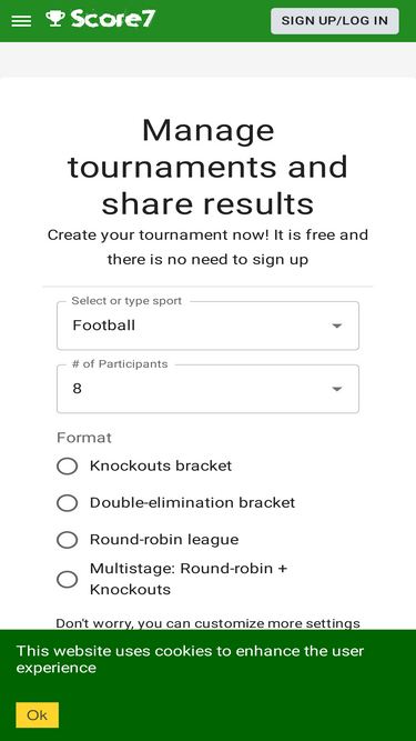 Use Score7 as your tournament bracket generator and online tournament maker. Create brackets, build full match schedules and share live results in minutes, without spreadsheets or downloads.