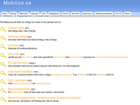 mobilize.se samlar de bästa mobila tjänsterna: os 2008, valutaomvandlare, nummerupplysning, korsordslexikon, synonymer, bästa pris, kartor, kolla tv-tabå, nyheter, hitta bilder, videoklipp, läs serier mm.