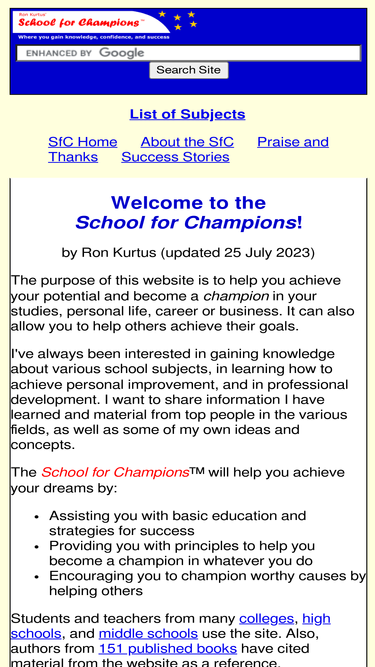 school for champions provides free online explanations and lessons for those seeking personal, academic and professional success.
