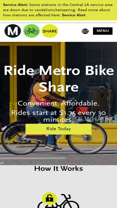 79%metro bike share is the bike share system for los angeles. with hundreds of self service bikes available anytime, you can get a bike at any station, and return it to any station. easy, fast, and fun, metro bike share is human powered public transportation, on your schedule.