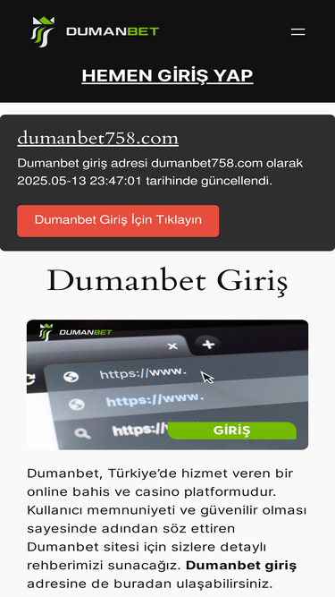 dumanbet giriş, dumanbet güncel giriş adresi ve giriş sorunları ile ilgili tüm bilgileri bu sayfada görüntüleyebilirsiniz.