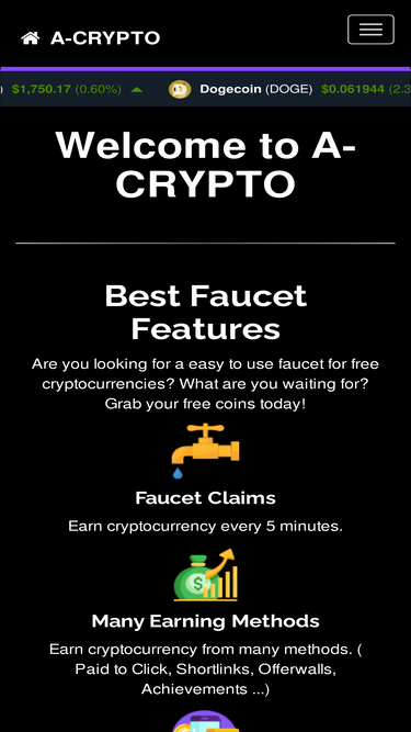 A-CRYPTO is a free crypto faucet where users can claim 20 cryptos every 5 minute and get paid instantly via FaucetPay.