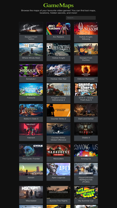 browse the interactive maps of your favourite video games! you can find loot maps, locations, hidden secrets and more!