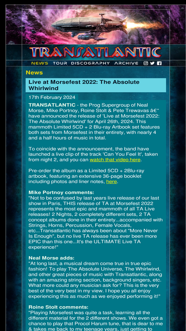 transatlantic - the official site : transatlantic is a supergroup, featuring neal morse (ex-spock's beard), mike portnoy of dream theater, pete trewavas of marillion and roine stolt of the flower kings.