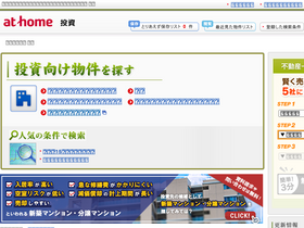 不動産投資・投資物件のことなら「アットホーム 投資」!投資マンションや中古アパートなどの収益物件検索や、投資に役立つコンテンツが満載。マンション経営・アパート経営を始める方をサポートします!