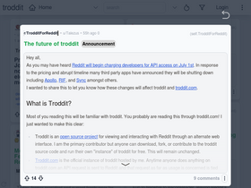 97%browse reddit better with troddit. grid views, single column mode, galleries, and a number of post styles. login with reddit to see your own subs, vote, and comment. open source.
