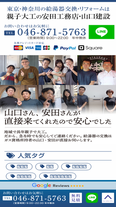 99%東京・神奈川の給湯器交換・リフォームは親子大工の安田工務店・山口建設