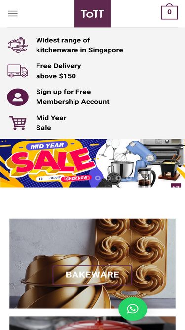 Shop all your kitchenware, cookware & bakeware Singapore essentials at Tott e-store. Free delivery for orders >$150.