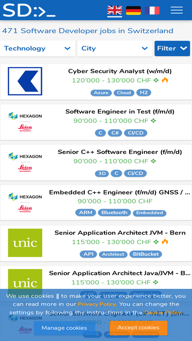 100%Looking for IT & Software Developer jobs in Switzerland? We are the only transparent job board where you find tech-stacks and salaries (up to 165'000 CHF per year)