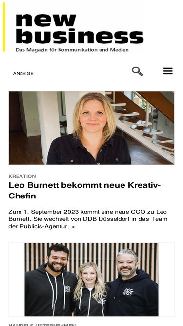 die website new-business.de hält die medien- und kommunikationsszene täglich auf dem laufenden. von montag bis freitag versorgen zweimal täglich die mittag news und abend news die community mit nachrichten.