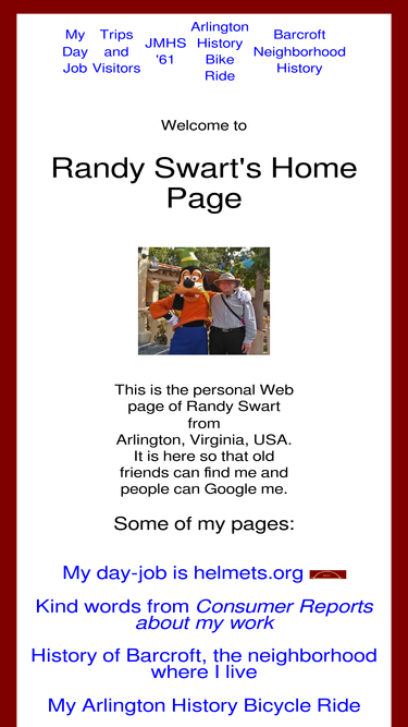 the home page of randy swart of arlington, virginia, usa.