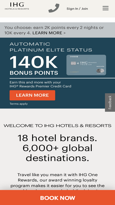 Save at any of IHG Hotels & Resorts' 6,000+ locations when you book direct. Choose from luxury hotels, resorts, extended stay hotels, pet-friendly hotels and more.