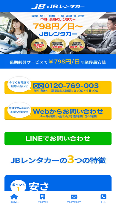 大阪・兵庫・京都・奈良など関西・近畿全域の法人・個人向けの長期レンタカーならJBレンタカー。業界最安798円の格安料金、無料配車サービス、自動車保険(任意)、JAF加入済みの安心保障。ウィークリーレンタカー、マンスリーレンタカーなど格安レンタカーならお任せ下さい。