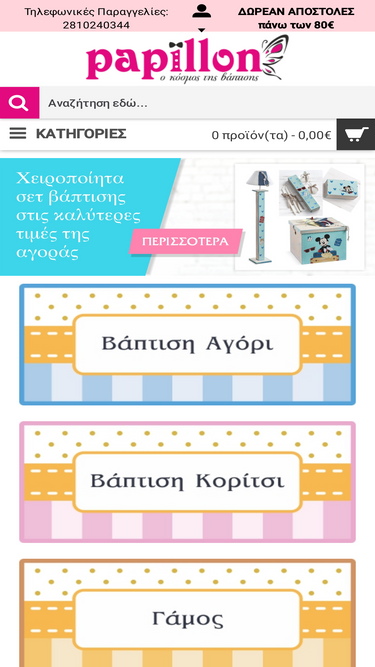 Βαπτιστικά Θεσσαλονίκη | Το μεγαλύτερο κατάστημα βαπτιστικών ειδών! Βαπτιστικά για αγόρι, βαπτιστικά για κορίτσι, στις καλύτερες τιμές της αγοράς.