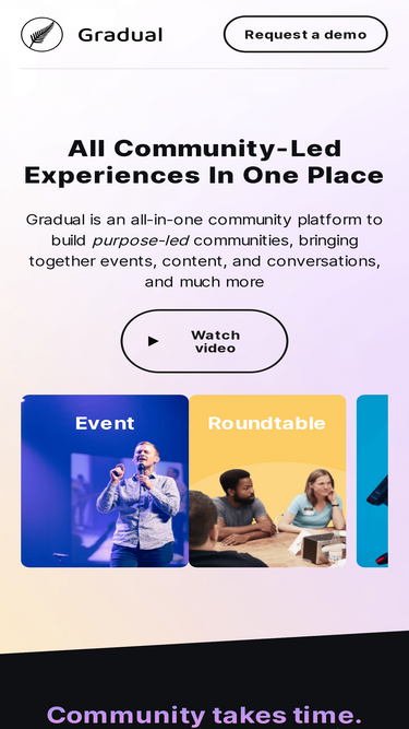 Gradual is an all-in-one community platform to build purpose-led communities, bringing together events, content, and conversations, and much more