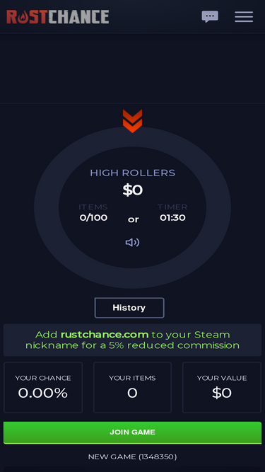 100%Place your skins into Rust jackpot with no limits alongside other players and win the entire pot!