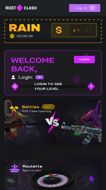 play battles, double, upgrade, roll, mines, plinko and unbox rust cases on the best rust gambling site. free rewards are also included!
