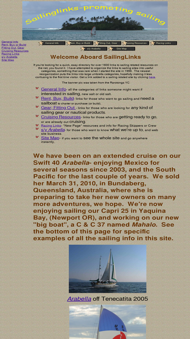 a comprehensive, organized, easy to use guide to sailing resources on the internet. links to training,charter, yacht clubs, books and magazines, and sources for boats, gear, and equipment.