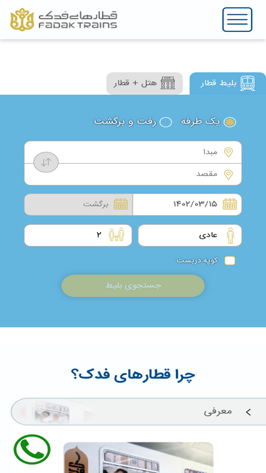 98%رجا، خرید آسان بلیط قطار با امکان استرداد (کنسلی) و پشتیبانی آنلاین و رزرو بلیط قطار تهران،هتل، مشهد و تمامی شرکت ها و مسیرهای ریلی، خرید مطمئن بلیت قطار با ارزان ترین قیمت و بالاترین خدمات