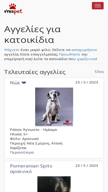 Στο pawfinder.gr θα βρείτε καθημερινά αγγελίες για κατοικίδια που έχουν χαθεί, βρεθεί ή αναζητούν υιοθεσία/φιλοξενία.