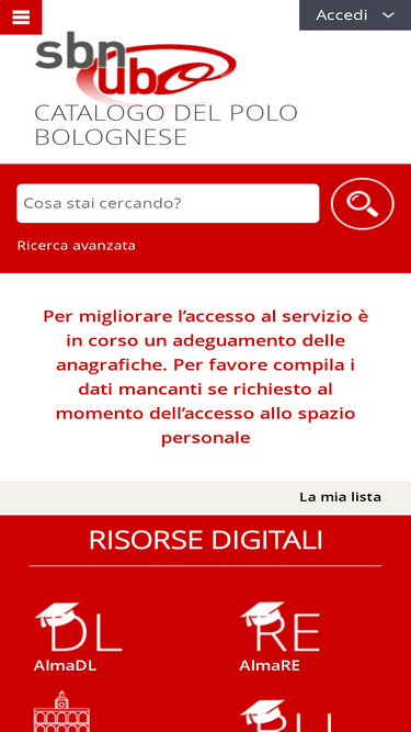 SBN UBO - Catalogo del Polo Bolognese è il portale delle Biblioteche del Polo UBO