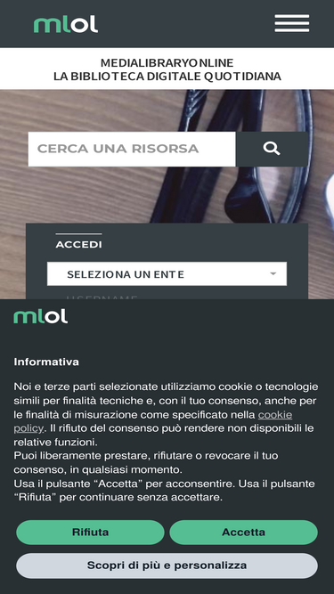MLOL è la prima rete italiana di biblioteche digitali. Una piattaforma per l'accesso al digital lending (prestito digitale) di ebook, quotidiani e periodici da tutto il mondo e tanti altri contenuti.