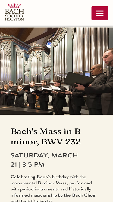 Professional choir and orchestra that presents the works of J.S. Bach in Houston, Texas.
